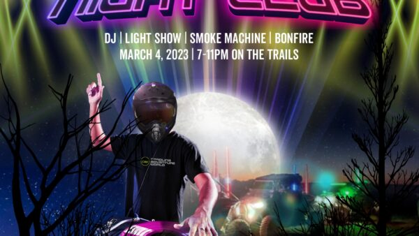 On the first Saturday in March, hop on your ride and join us on the trails for a DJ, lights, bonfire, and more! To find us, just follow the music or the reflective tape-marked path.